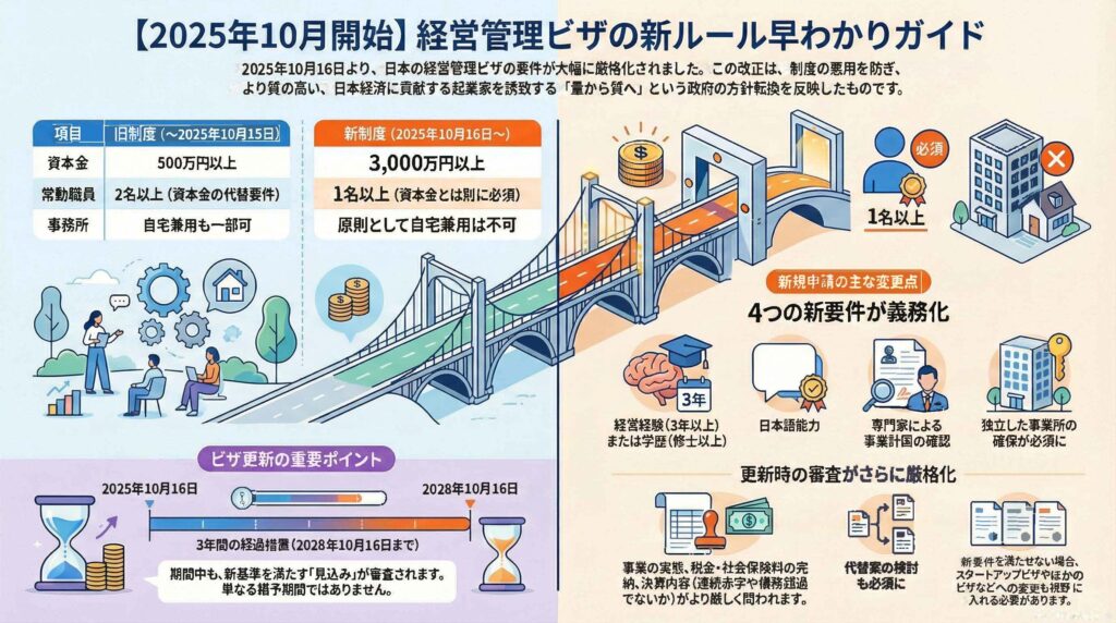 2025年10月17日以降(2028年10月16日までの経過措置期間内)経営管理ビザ更新の影響